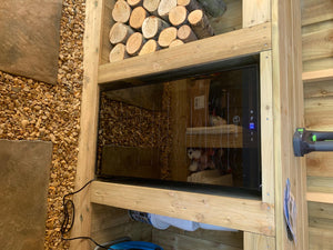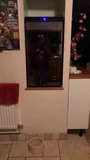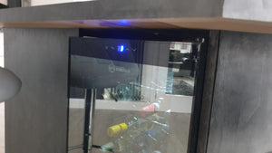 - QUALITY BUILD CONSTRUCTION - High Density Foam Injection Cabinet Mould with High Grade Dual Glazed Frameless Black Safety Glass Door. Dimensions = [W] 430 x [D] 450 x [H] 841 mm. Capacity = 82L | 28 Bottle Capacity